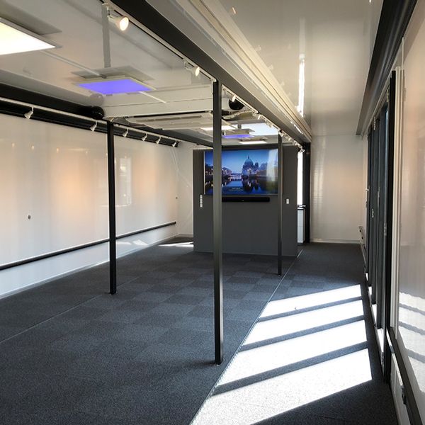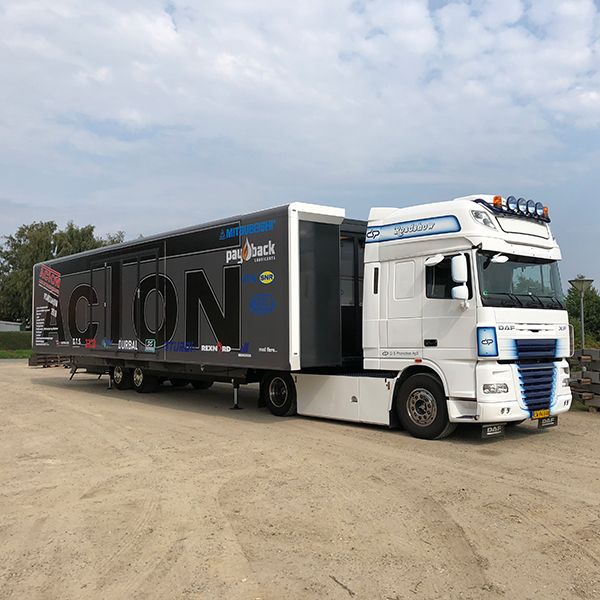 Trækkeren har monteret en 18 KVA generator, der kan forsyne udstillingstraileren med strøm.